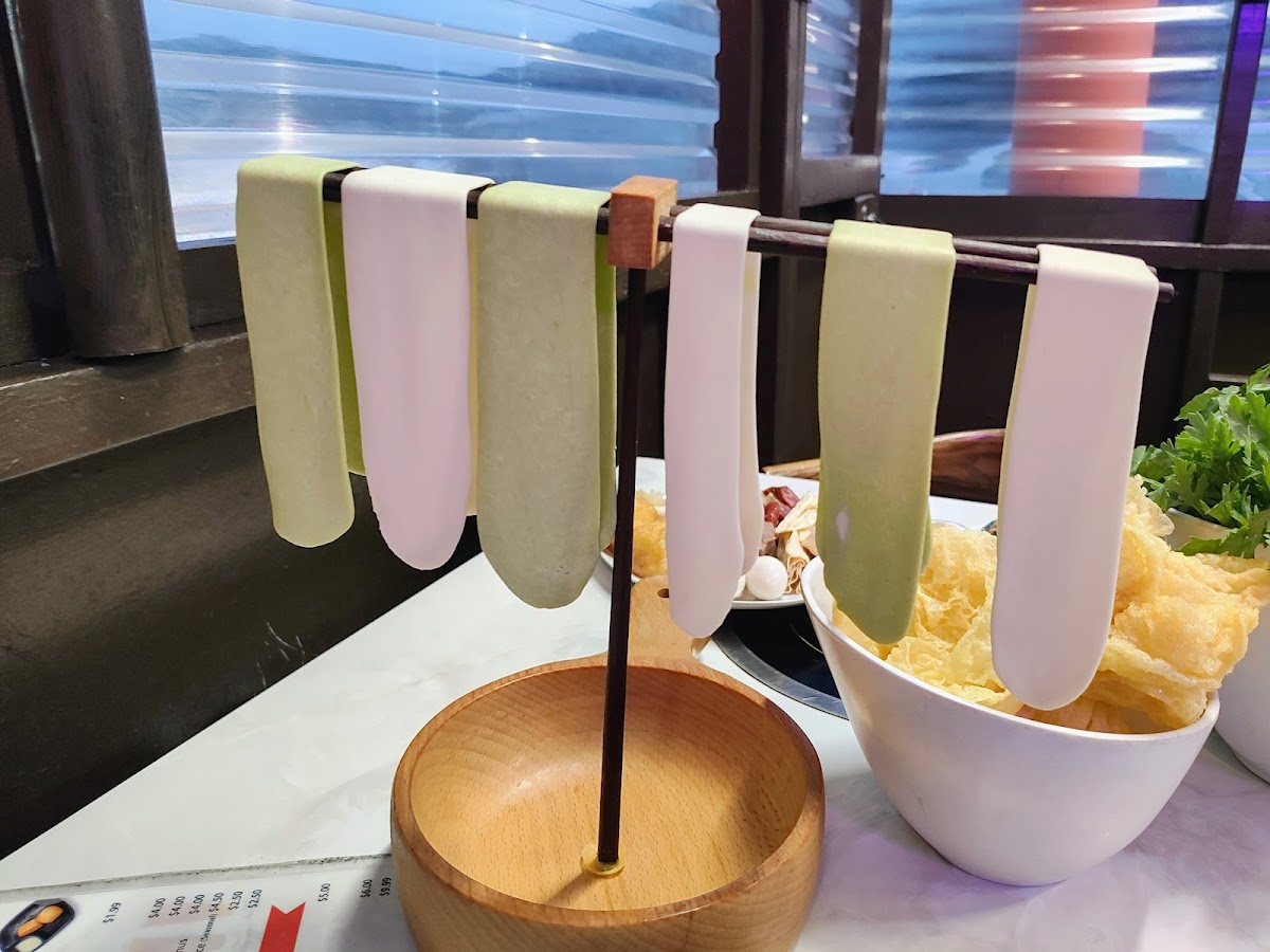 It was super busy when we came around 5pm on a weekend but we got seated outside and with the heat lamp and hot pot, it was okay sitting outside. I liked that it was individual pots vs a big shared one. You can even order a pot that was half hot pot and half bbq which was fun but a lot of work. The sauce bar is included with the price of AYCE which I appreciate. They have some pretty unique broths like Malaysian Bak Kut Teh (which I got), cilantro and preserved egg and coconut pork bone soup just to name a few. Included was of course meat, seafood, balls, veggies, noodles, and cooked appetizers. Although previous frozen, the meat was pretty good quality. The biang biang noodles were a must get, especially to eat with a flavorful broth!